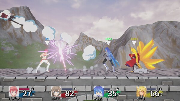 Dreamland is a 2D fighting game for up to 4 players. Select a character and stage to start the game After selecting a character and stage, the game starts with 3 units remaining! Use combos and special moves to blast your enemies out of the field and reduce your opponent's remaining units!