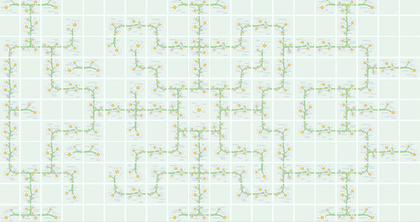 A grid space to clear your mind and create your own work. You can draw a floral path, a maze, a network of pipes, or some meaningless yet pleasing patterns—anything you like.