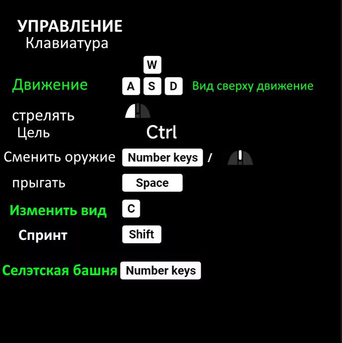 Используйте клавиши 1, 2, 3 на цифровой клавиатуре для быстрого выбора оборонительных башен и W, A, S, D для перемещения. Перемещение возможно как в перспективе персонажа, так и в виде сверху.