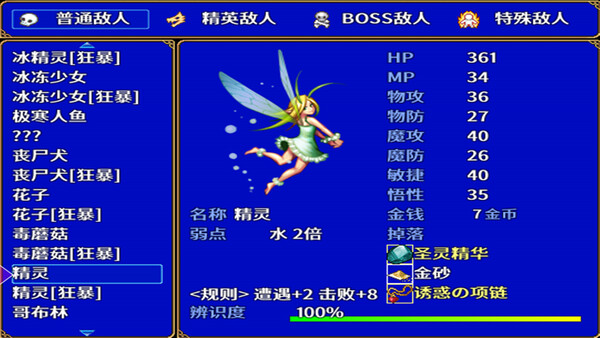 分类了各种敌人,普通敌人,精英敌人,BOSS敌人……,想看谁的资料都能快速进行查找。