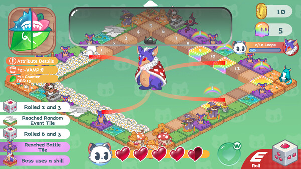 A turn-based RPG with Monopoly-style gameplay! The Dream Forest has been invaded by nightmares, and to fend off the nightmare's corruption, the cute cat leaps into action!