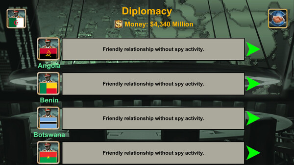 На дворе 2027 год, повстанцы свергли правительство. Ты выбран в качестве нового лидера своей страны! Основываясь на реальной информации, игра предоставляет тысячи различных вариантов развития событий. Используй дипломатия или объявляй войну. Всё зависит от тебя!