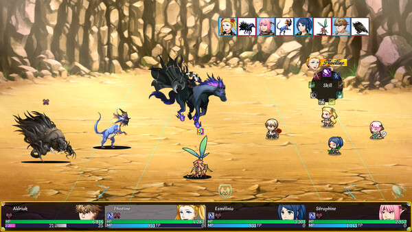 Aldriak, the advent of a new world takes place in a fantastic open world in which the player accompanies the heroes through their saga. It's an RPG turn-based strategy game inspired by the first games of the genre but with a new and original mechanic. This mechanic takes the form of 3 distinct rows in which all the fighters (players and creatures) are placed. Each skill requires being in a particular row and can only target by following certain rules.