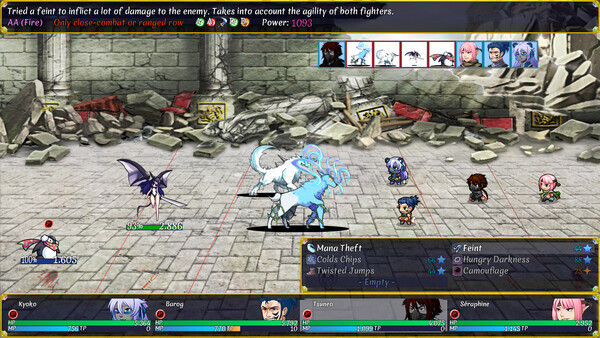 Row system to give a new dimension to the turn by turn. The rows define the range of the attacks and allow, among other things, to define a tank role that is not doomed to use a taunt all the time to attract attacks on him.