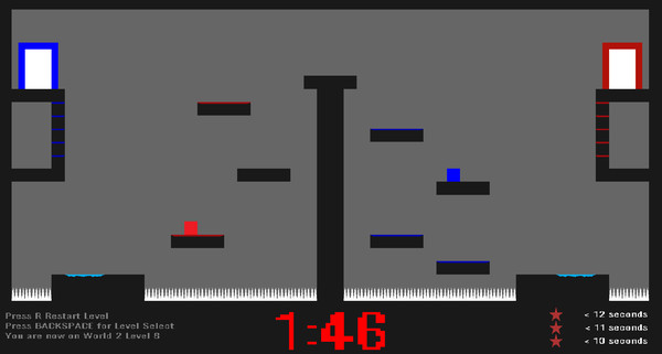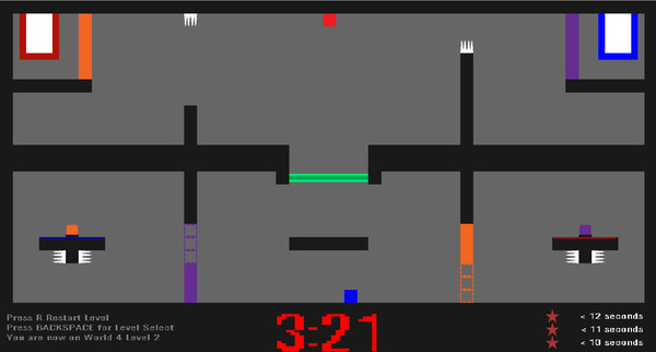 Ambidextrous Psychopath is all about the gameplay, and is designed for the gamer who wants a fresh platforming challenge. Ambidextripath is designed to challenge the player to develop strategies to split their focus onto two simultaneously moving player objects.