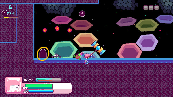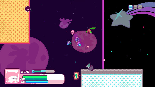 Astropods: Starside Glaze is a 2D Fighting Platformer with endless mobility and combat potential! Starring as Hemi (pink) and Acro (blue), swap between them at any time to utilize their unique traits within various environments!