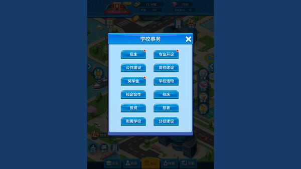 This is a simulation business game. Players play the role of university president in the game. Players need to manage and formulate various policies and measures. The game really simulates the current situation of the university.