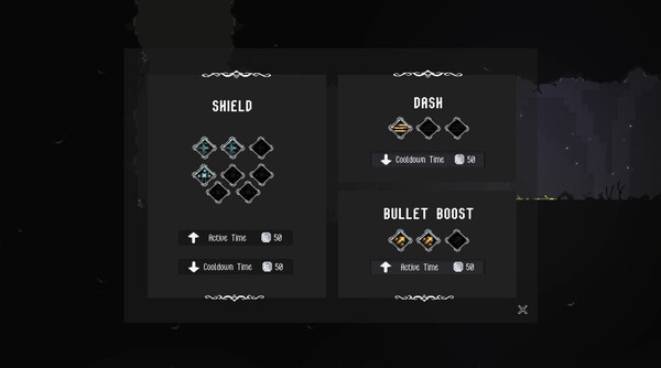 Become stronger by finding new heart containers. Upgrade shield , dash and bullet booster specifications to make them last longer and reduce cooldown time.