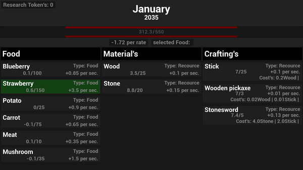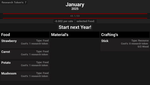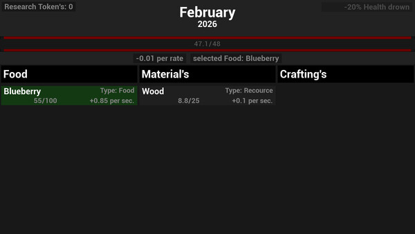 A minimalist Roguelike × Idle: click a tile to mine a resource - while your lifeline constantly drains. Food keeps you alive, materials fuel your research.