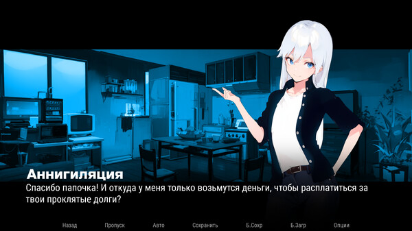 Главная героиня – обычная девушка по имени Аннигиляция, которая живет в маленьком городке А. Она получает по наследству огромный долг своего отца и в отчаянии ищет выход. На улице она встречает незнакомку в плаще, назвавшуюся Катарсис, которая предлагает демонскую подработку на неделю.