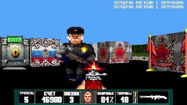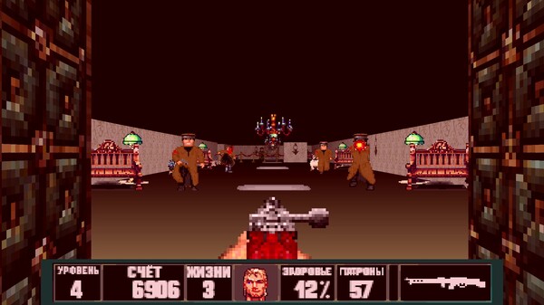 Специально разработанный движок с трассировкой лучей в 3D, созданный с нуля с использованием тех же технологий, что и в революционной игре Wolfenstein 3D от id Software.