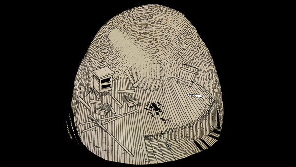 Entire game is hand-drawn. There's nothing auto-generated nor procedural. There's no AI used in any capacity. Each location was thoughtfully designed. Its stylized and sketchy character emphasizes the eerie atmosphere of an unshaped nightmare you found yourself in.