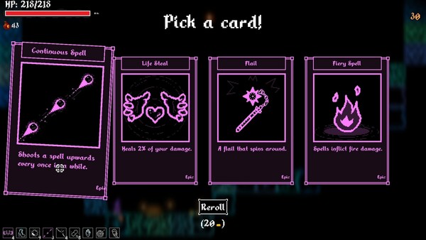 Deepest Well is a roguelike wave shooter inspired by Seraph's Last Stand, designed around creating synergistic builds to potentially break the game with crazy combinations.