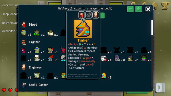 The game currently features nearly 150 units, with gameplay inspired by inventory management and card synergies. For example, meat can boost a beast's attack power, and pairing hunters with beasts can provide a higher attack bonus.You can also use imps summoned by warlocks to nourish the great demons, or have engineers build powerful crossbows. Almost every unit has a corresponding synergy, and there are dozens of playstyles waiting to be explored. Try different strategies to clear the game—you might find some unexpected surprises!