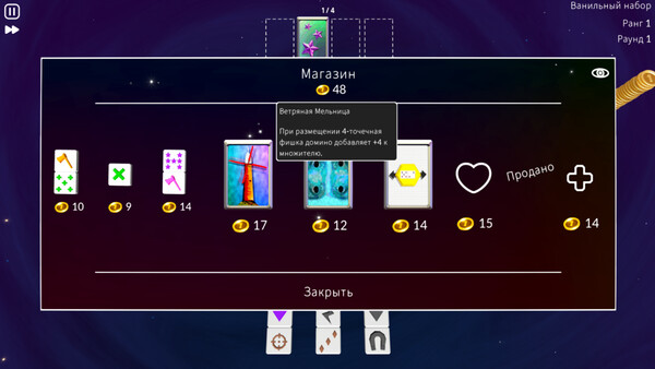 Успех вашего забега во многом зависит от покупки карт Nova. Эти карты могут создавать мощные эффекты или бонусы к очкам при выполнении условий. Когда вы совмещаете правильные карты Nova с подходящими домино, происходят безумные синергии.