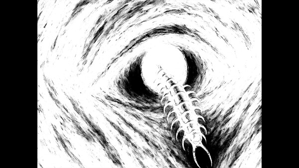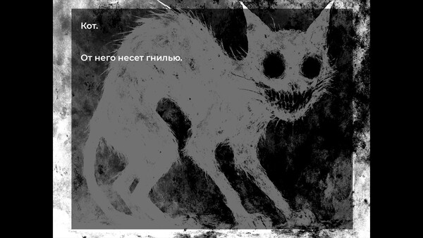 Черно-бело-красная визуальная новелла в жанре "ужасы".