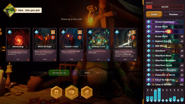Механики жертвоприношений: Обменивай HP, миньонов и ресурсы на большую силу. Риск и награда играют ключевую роль в Doomspire.