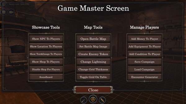 With this mode, Game Masters can easily manage the game and enhance their campaign with powerful visualization tools. Using the Map Tools, you can create battlefields, modify them, add enemy tokens, and even upload custom token images. You can also assign equipment to players, apply status effects, or reward them with money for discovering that hidden stash! Additionally, you can display NPCs, locations, or any text or image you want to share with all players.