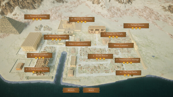 - Cinematics and in-game cut scenes with voices based on the historical fiction novel "Exodus: God of the Slaves"