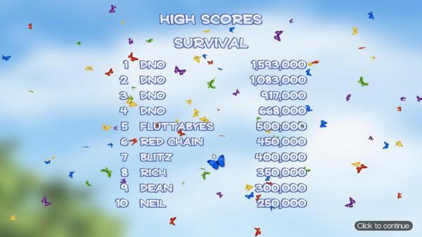 - В режиме на выживание, освободите как можно больше бабочек прежде, чем одуванчик развеется на ветру. Попробуйте превзойти свой рекорд прежде, чем иссякнет время!