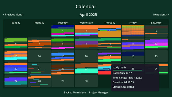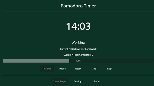 The game synchronizes your Pomodoro timer with project management seamlessly, allowing you to switch between focused work sessions and well-deserved breaks while tracking everything automatically. As you complete work cycles, you'll earn achievements and visual feedback that turn productivity into a satisfying game.
