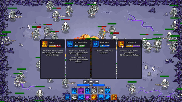 Сломайте игру. Вариативность в создании заклинаний позволит вам создавать сборки, которые наплюют на баланс. Уничтожайте врагов быстрее, чем они появляются. Наполните экран взрывами и сломайте счетчик FPS!