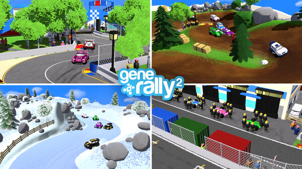 GeneRally 2 is a friendly top-down arcade racing game - with an easy-to-use, built-in track editor. GeneRally 2 is the sequel to the 2002 classic, GeneRally - one of the most played arcade racing games of all time! Have fun racing alone against computer-controlled opponents; with your friends in "no split-screen necessary" couch PvP; online with players from around the world; or try your hand at creating tracks and sharing them with the community!