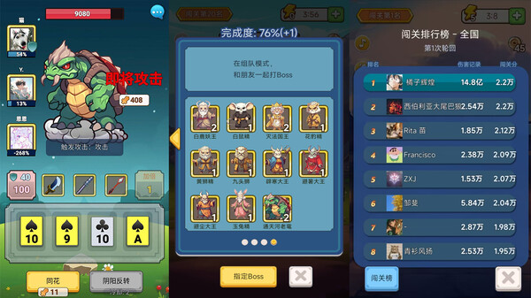 Supports 2 to 4 players cooperating to defeat bosses. In this mode, the playing cards can not only attack but also protect teammates.