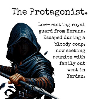 After narrowly escaping a violent insurrection in your country, you are thrust into the underworld of nearby DuPont, a crumbling city-state ruled by technocrats, competing drug cartels, and a mysterious cybernetic superpower called “The Eye of God.” Joined by a scrappy crew of smugglers, alchemists, and wanderers, you venture westward to Yerdan, a distant port-city where your surviving family awaits you… hopefully.