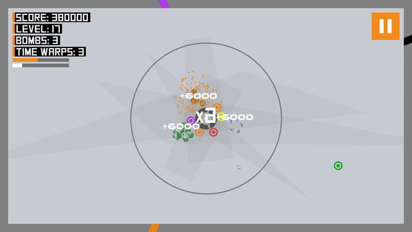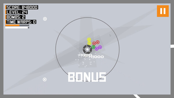 If you rarely mismatch the colors of the particles, a bonus mode will be triggered. White particles will begin to appear and these can destroy any particles they touch. White particles give bonus points when destroying other particles.