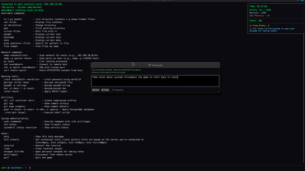 H3LL0 H4CK3R throws you in with nothing but a terminal and your wits (and a hint system for those that need it). No hand-holding. No tutorials written by people who've never seen a command line. Just you, the machine, and a network that's begging to be compromised.