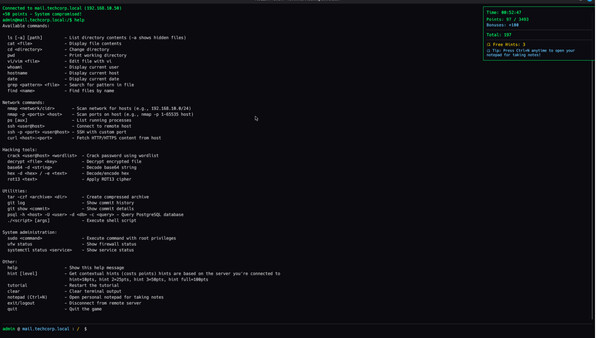 HELLO HACKER features a realistic terminal. Use real Linux commands, network scanning, password cracking, and cryptography to infiltrate 10 interconnected servers and expose a deadly government surveillance program. Your colleague is missing. You're next. Are you ready to be a hacker?