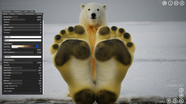 HAELE 3D - Feet Poser Pro создает реалистичные и стилизованные эталонные позы и анимации для рисования ног. Редактируйте каждую деталь, вплоть до морщин на подошве, лака для ногтей, вен, отпечатков пальцев и даже мозолей.