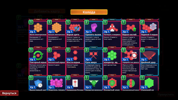 Hex Blast — roguelike-декбилдер против орд: создавайте взрывные комбо на шестиугольном поле, чтобы уничтожить киберорды. Соберите колоду, находите разогнанные чипы и откройте самые имбовые билды, пока враги не подавили вас.