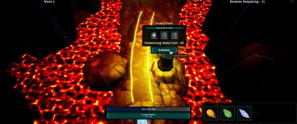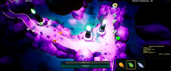 Dive into the Labyrinth and protect the Kingdom by defending your Mana Crystal as it is what powers your means of defence that being the power of the elements, one means of defence will be your towers, each one capable of manifesting an elemental projectile allowing you to defeat your foes, another one being the ability to summon units from the Militia from the surface that are mainly used to slow down the enemy while the towers handle the damage, lastly the spell scrolls that have a chance to drop from enemies may be a game changer if applied correctly.