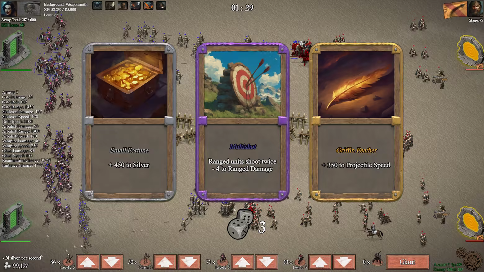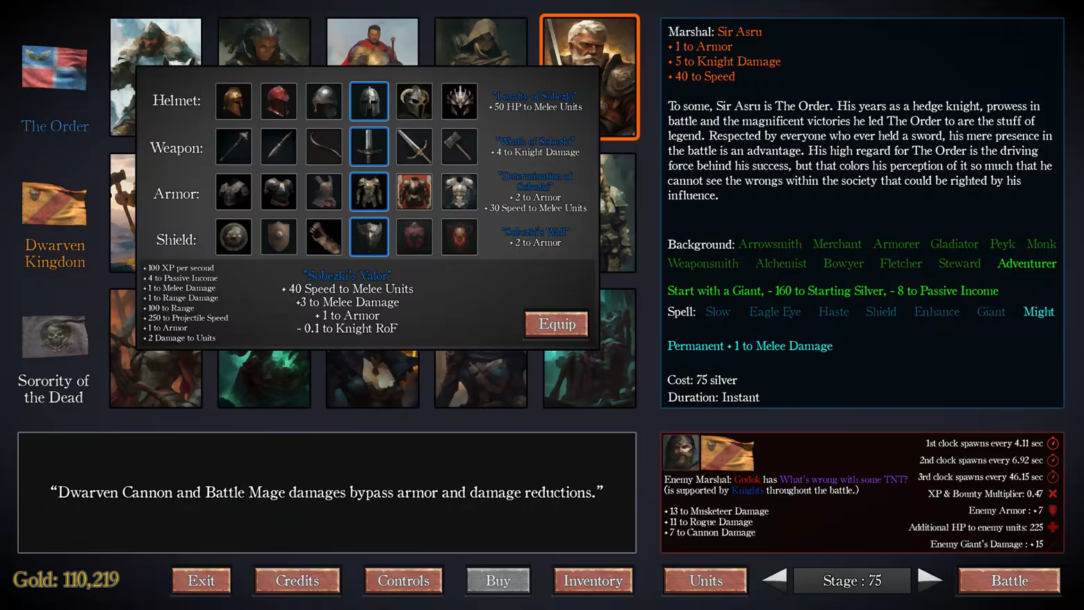 Customize your army by picking a marshal, equipping items, selecting a background and spell. There are so many variations to discover!