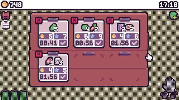 Harvest and produce items to gain money and experience. Use this money to unlock new seeds, buy machines or even expand your garden.