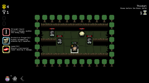 - Combat system: Use your surroundings, push enemies into traps, and move correctly in combat to get the most out of your options. Every cell on the map is important.