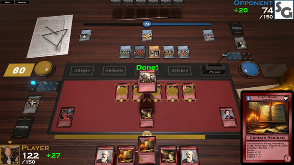 Embark on a fascinating single-player campaign that will take you through the history of classical music. Explore different musical periods such as the Renaissance, Baroque, Classicism, Romanticism, and Modernism. Face challenging opponents and discover the rich musical heritage that inspires each card.Delve into the world of Musicmenia and prove that you are the best concert master in exciting musical duels!