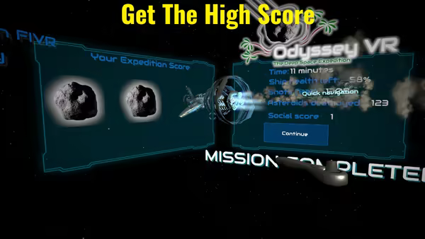 «Одиссея» - это одно- / многопользовательская аудиовизуальная игра в жанре космического приключения, в которую играют на стандартном мониторе или в виртуальной реальности. Цель игры - найти планету, пригодную для жизни, но чтобы добраться туда, игроки должны защитить корабль от астероидных штормов.