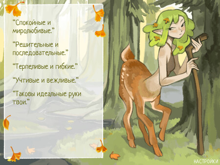 Здесь всего одна линейная сюжетная ветка и один романсибельный персонаж, но есть простая повторяющаяся головоломка, которую нужно решить, чтобы добраться до «истинной концовки».