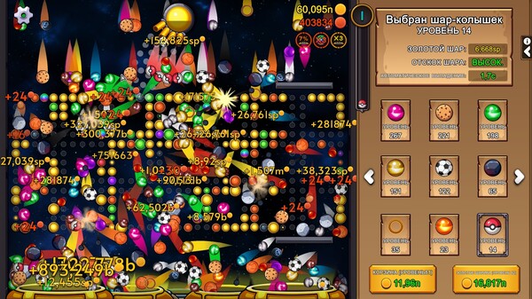 PegIdle — это инкрементальная игра в стиле Пачинко! Прицеливайтесь и стреляйте шарами, чтобы выбить все колышки на доске. Получайте золото, выбивая золотые колышки или попадая шарами в движущуюся корзину. Тратьте золото на новые шары и улучшения для них!