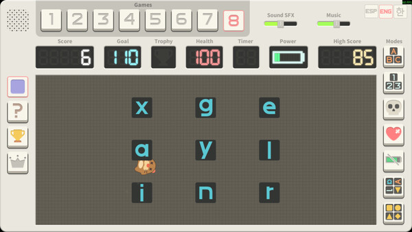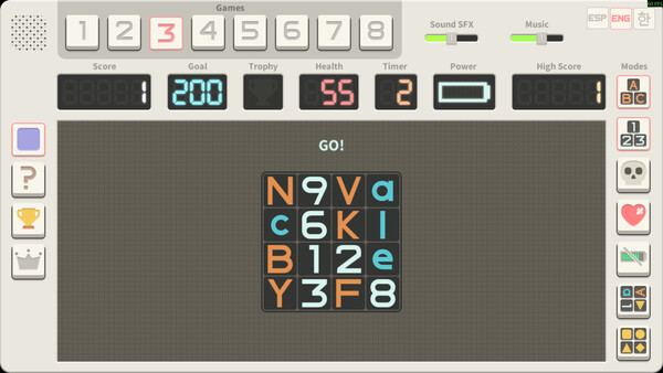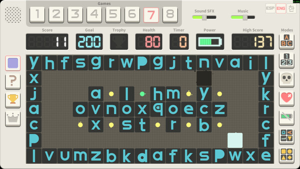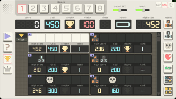 7 Game modes that can be combined for a total of 128 unique combinations: