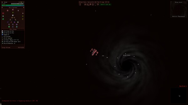 A world (galaxy) is divided up into a grid with each cell being a "sector". Characters can move from sector to sector continuously or take advantage of jump drives, jump gates, and wormholes to move larger distances. A sector can be an entire asteroid field, star system, nebula etc. There are combat areas and anomalous regions with more challenging enemies and better item drops. The character may be visited by NPC or ambushed in a random encounter while they move through dangerous regions of space. Make use of NPC stations and resources to progress, additionally characters may deploy their own stations and fortify the area with drones to protect against hostile invaders.