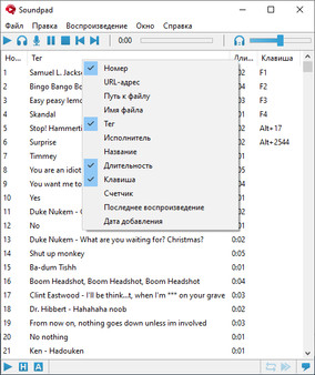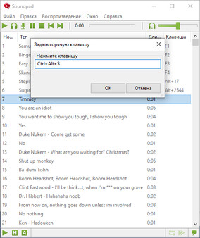 Для звуковых файлов можно задавать горячие клавиши на воспроизведение их во время игры.