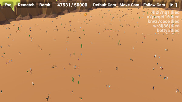 The maximum number of participating viewers depends on the playing environment and can be specified in the tens of thousands. Enjoy Deathmatch Mode with a large number of viewers.