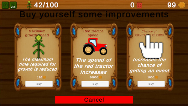 Your farm evolves before your eyes: machines take over, tractors harvest for you, and your stats skyrocket. Each upgrade makes your farm more profitable, faster, and more efficient. Meanwhile, Grandpa George — your lazy, retired grandpa who never misses a chance for a sarcastic comment — follows you with grumpy but oddly endearing advice.