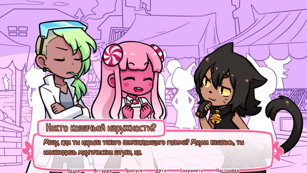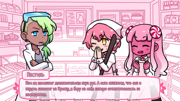 SYRUP AND THE ULTIMATE SWEET is a visual novel originally made for YuriJam 2015! It's about a candy alchemist, Syrup, who one day finds a candy golem in her basement workshop.