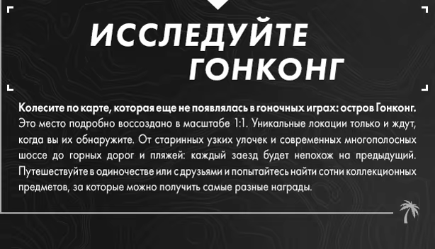 TDUSC — это не просто гоночная игра с открытым миром. Это образ жизни и платформа для общения. Посетите детально воссозданный остров Гонконг. Садитесь за руль потрясающего автомобиля, выезжайте на дорогу и живите роскошной жизнью своей мечты.