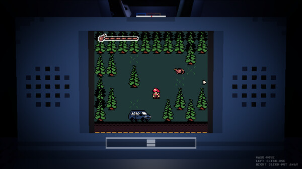 You are in the backseat of your parent's car during a long drive. As your parents begin fighting, your hand-held game is your only source of entertainment. But the game begins to mirror real life... Collect items on your hand-held game to send them to your world, and use them to defend against the monstrosity that's trying to make its way in.